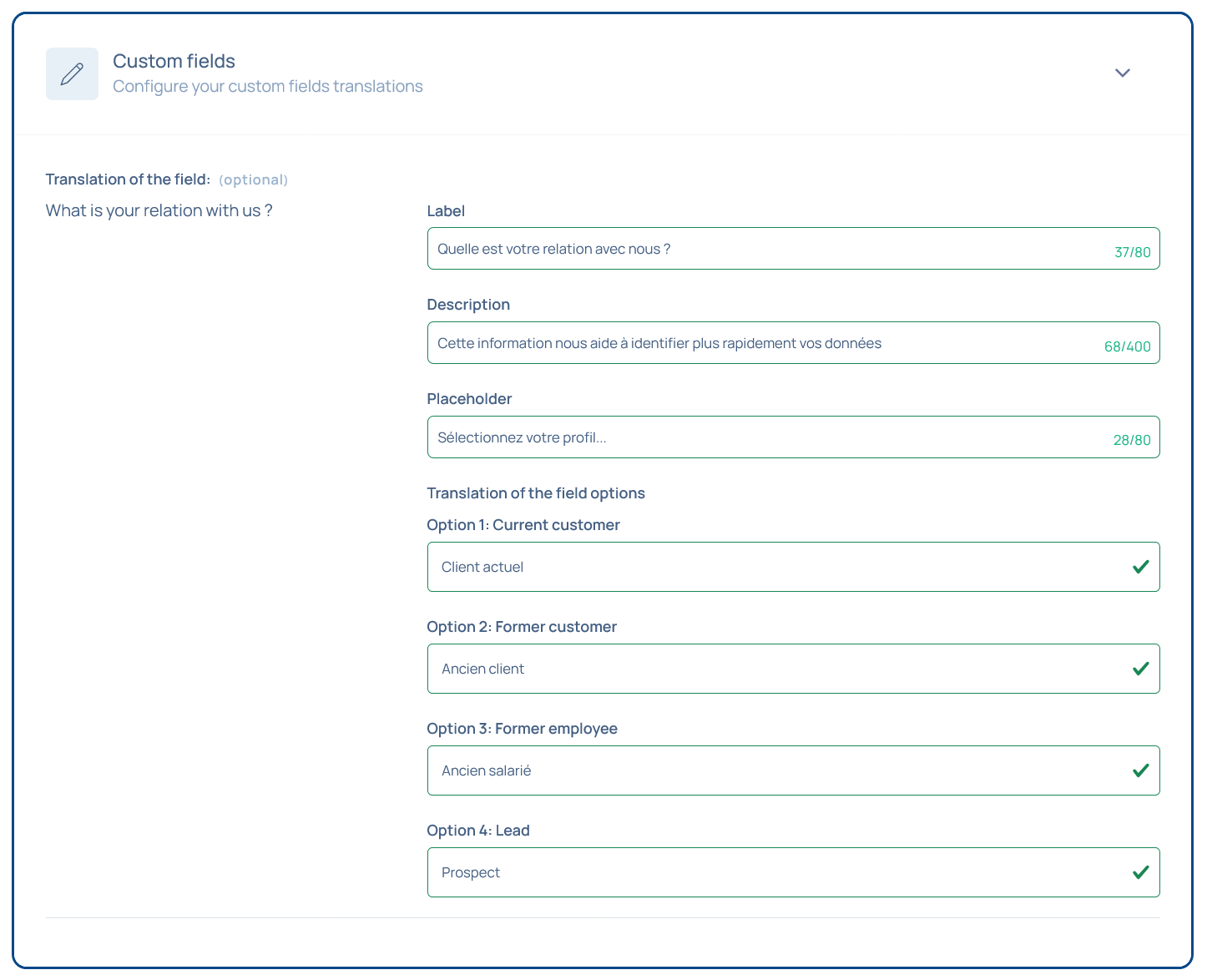 Custom fields (for example a dropdown list) included in a request form can now be translated for each language of the form.