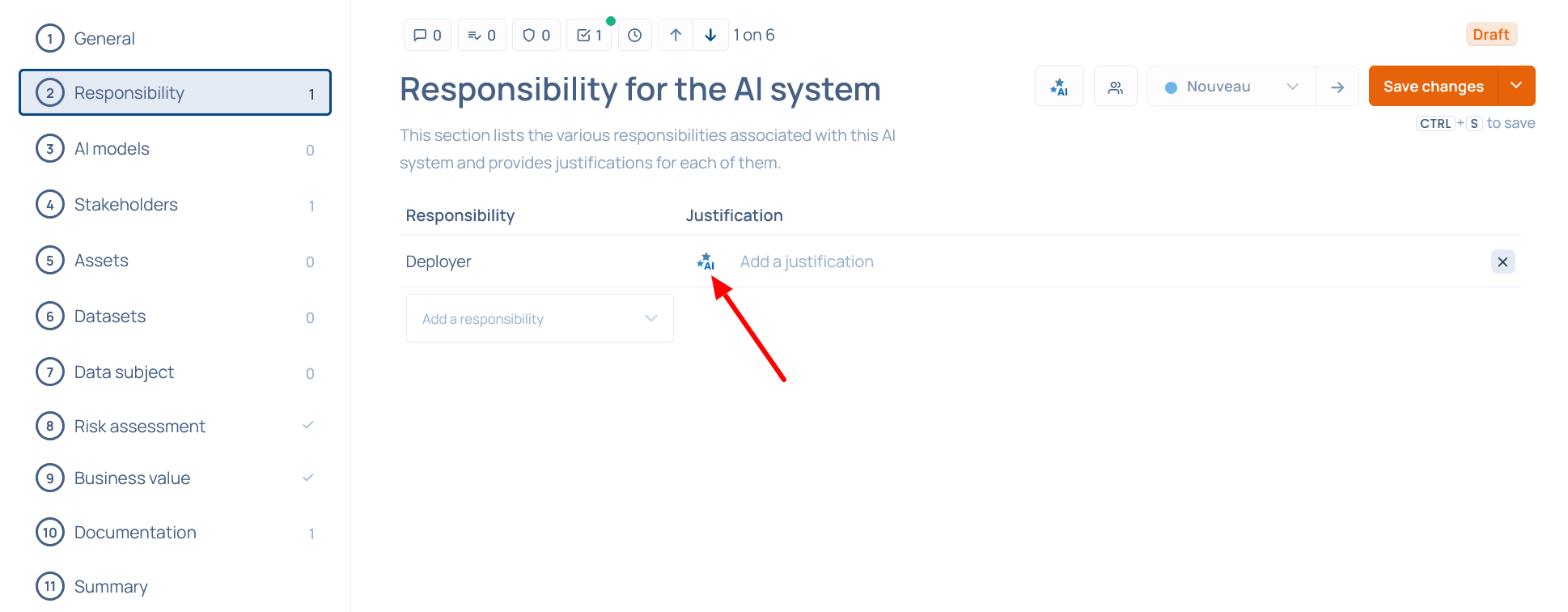When configuring an AI system, if no responsibility has been defined, a 10-question questionnaire is now offered to help determine the responsibilities associated with that system.