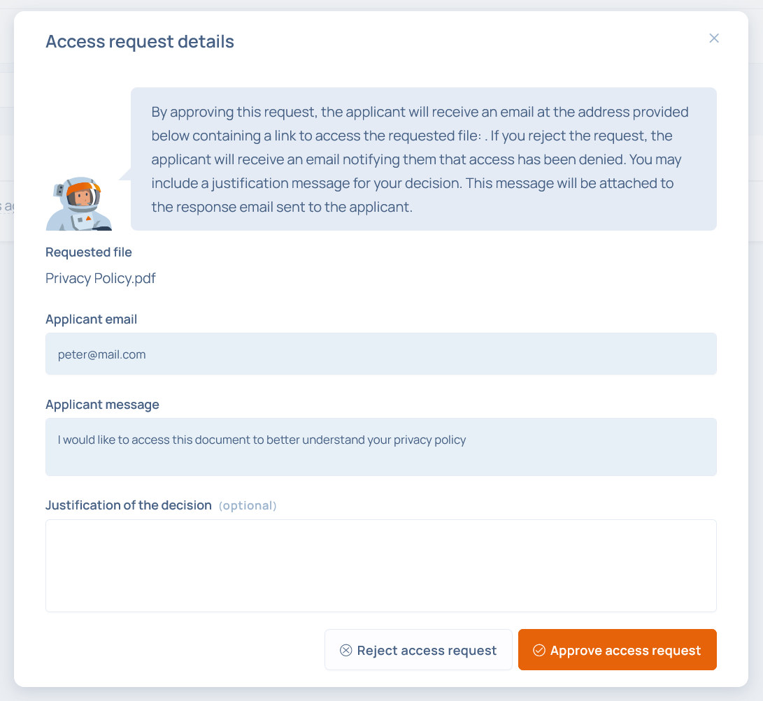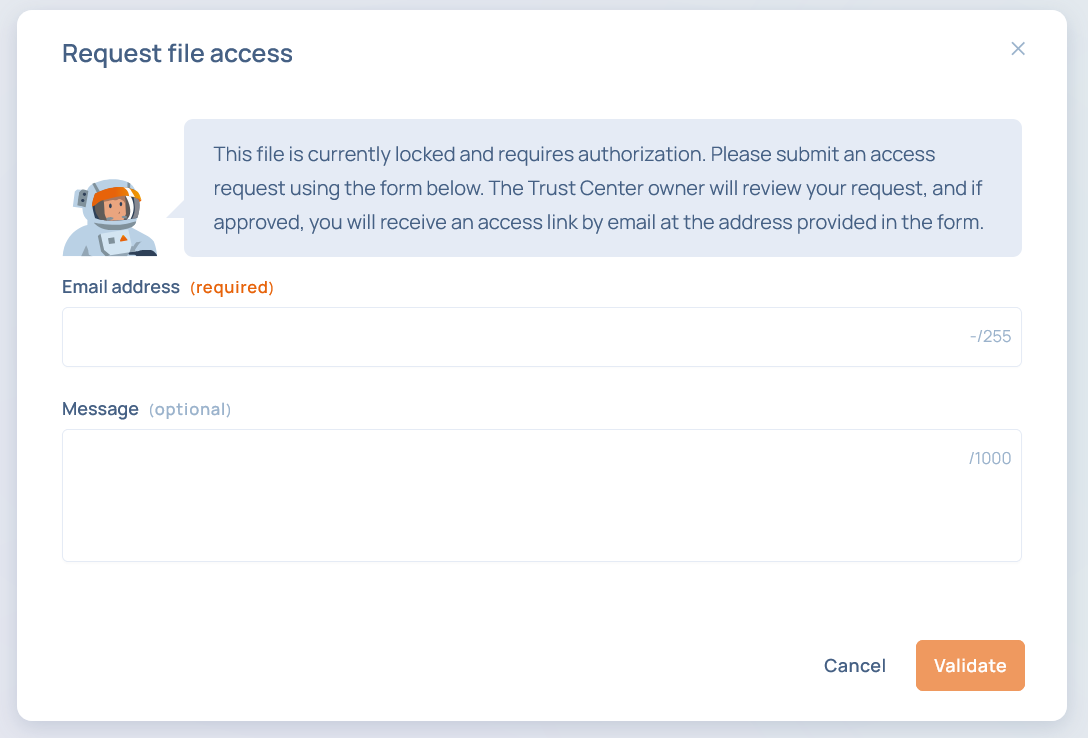 Trust Center owners then receive an email and can manage access requests from a new screen in the Trust Center module.